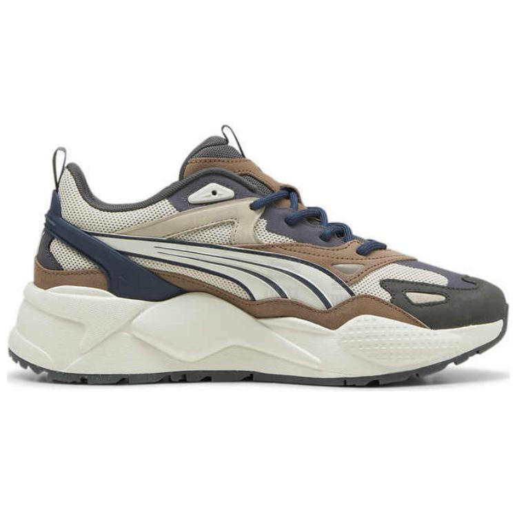 Верх кроссовок выполнен из комбинации воздухопроницаемой сетки (mesh), мягкой замши, гладкой кожи и синтетических накладок, что обеспечивает идеальный баланс между прочностью, гибкостью и визуальной глубиной. Многослойная конструкция придаёт модели динамичный вид, подчёркивая её архитектурные формы. Основная цветовая палитра — это гармоничное сочетание белого, серого, кремового и чёрного, дополненное яркими акцентами, отсылающими к фирменным цветам Puma 80-х. Такой дизайн создаёт эффектное сочетание классики и современности, идеально подходящее для любого гардероба.