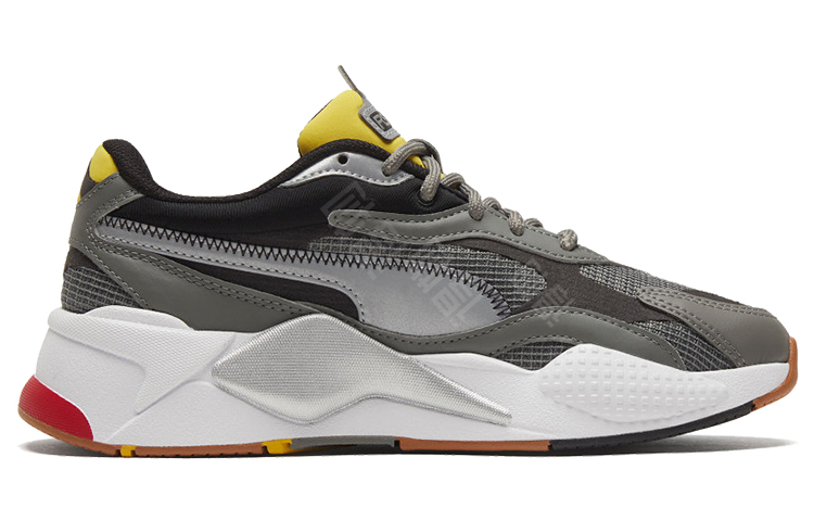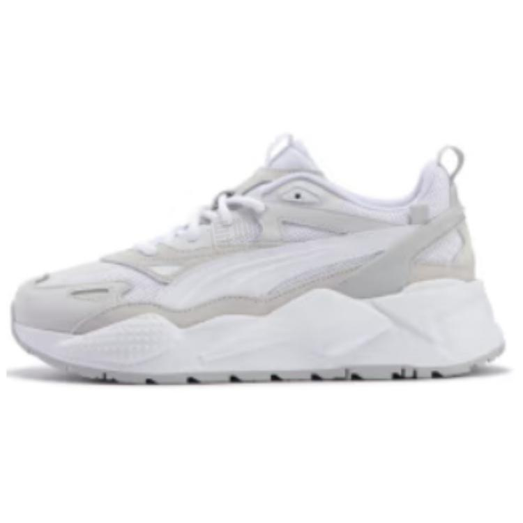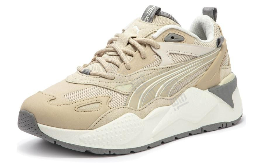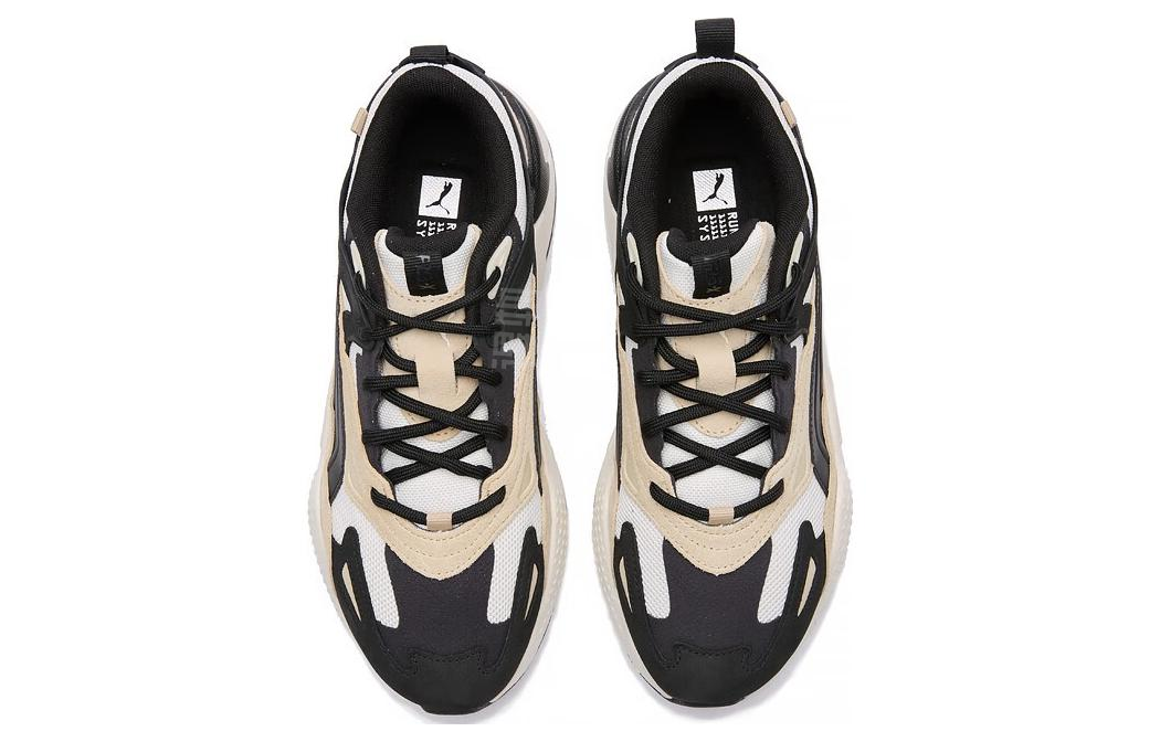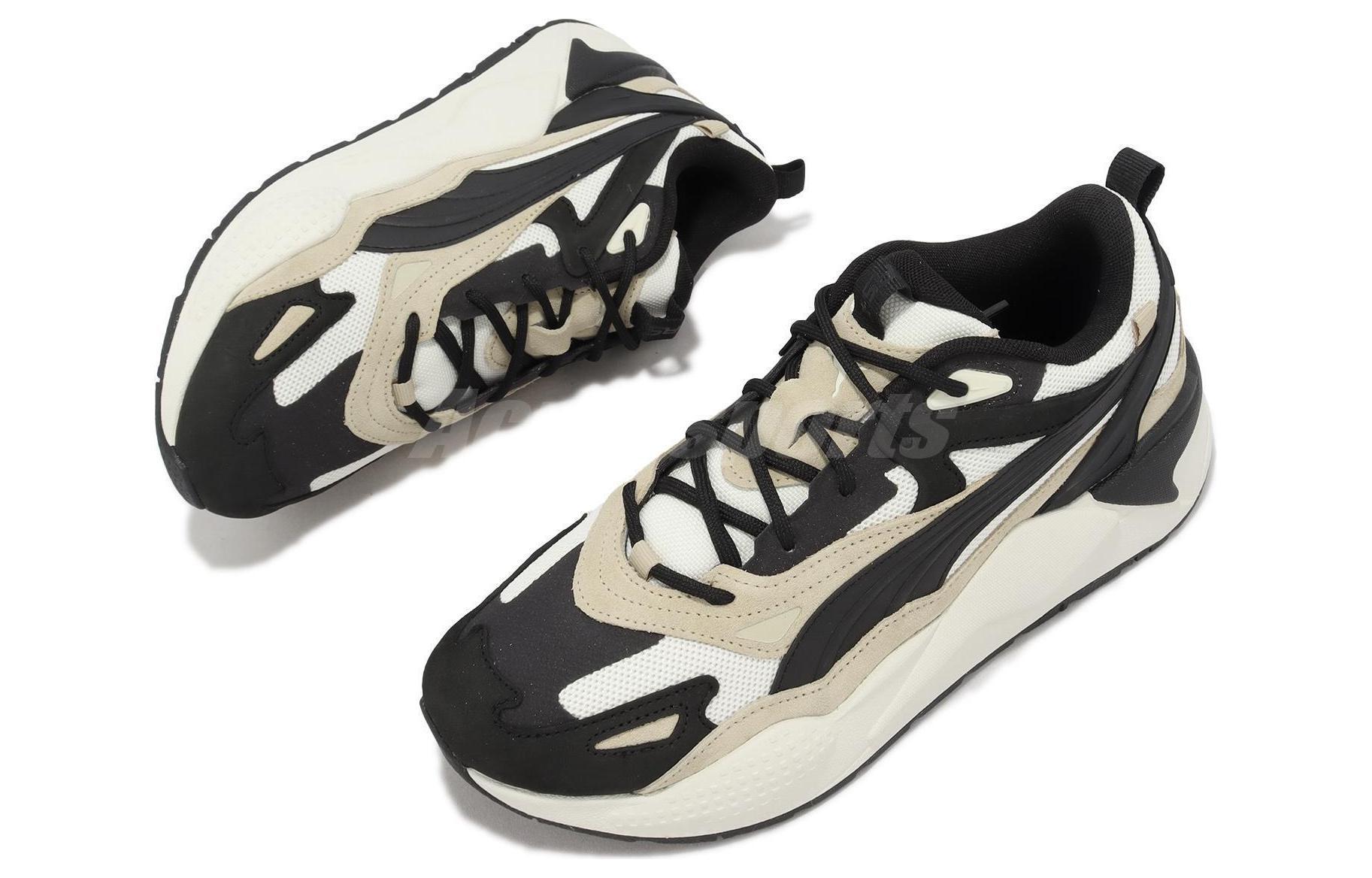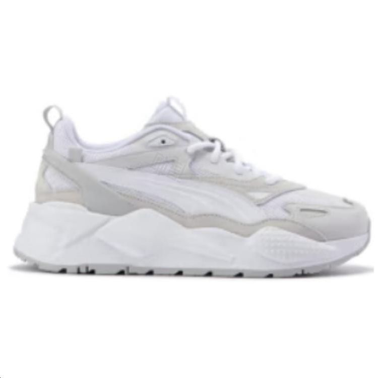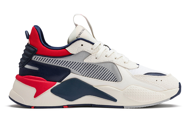 Верх кроссовок выполнен из комбинации воздухопроницаемой сетки (mesh), замши, гладкой кожи и синтетических накладок, что обеспечивает идеальный баланс между прочностью, лёгкостью и стилем. Сетчатые элементы гарантируют вентиляцию, сохраняя комфорт даже при длительном ношении, а замшевые и кожаные вставки усиливают конструкцию и придают модели визуальную глубину. Многослойный верх создаёт характерную архитектуру RS-X — с чёткими линиями, геометрическими панелями и сложным силуэтом, который делает обувь визуально мощной и динамичной.