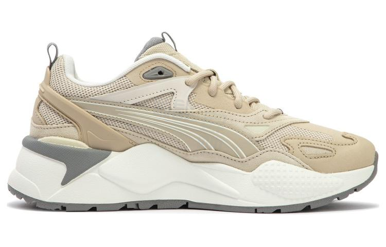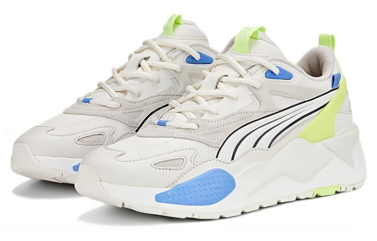 Фирменные элементы Puma придают модели аутентичность и узнаваемость. На боковых панелях располагается легендарная полоса Formstrip, плавно вписанная в архитектуру силуэта. Логотипы Puma RS-X и Running System присутствуют на язычке, пятке и подошве, подтверждая принадлежность модели к культовой линейке. Каждая деталь выполнена с точностью и вниманием к качеству — от фактуры замши до точной прострочки.