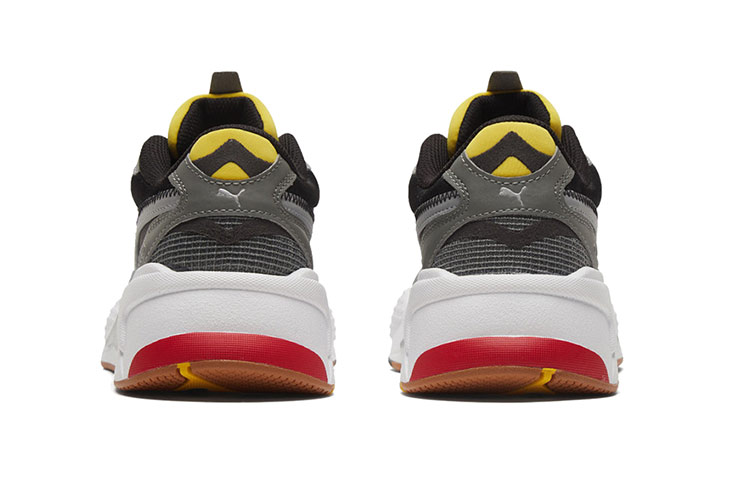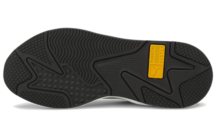 Наружная подошва изготовлена из высококачественной резины с рельефным протектором, который обеспечивает стабильное сцепление и долговечность. Её геометрия подчёркивает характерный дизайн серии RS-X — сочетание массивности и функциональности. При этом подошва остаётся гибкой, устойчивой и удобной, что делает модель идеальной для движения в городских условиях.