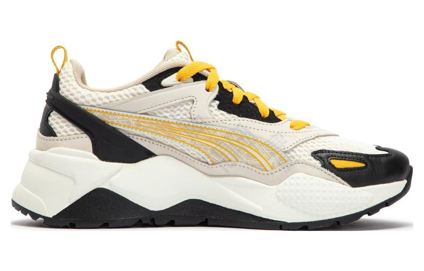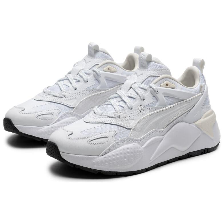 Силуэт Puma RS-X³ 'Sunset Hues - White Silver' воплощает идею объёма и движения. В третьем поколении линейки дизайн стал ещё более многогранным — с чёткими геометрическими линиями, плавными переходами форм и визуально «слоистой» структурой. Благодаря продуманной архитектуре и гармонии пропорций модель выглядит мощно, но при этом остаётся лёгкой и сбалансированной. Мягкий язычок и воротник обеспечивают комфортную посадку, а текстильная подкладка создаёт ощущение мягкости и надёжного прилегания к стопе.