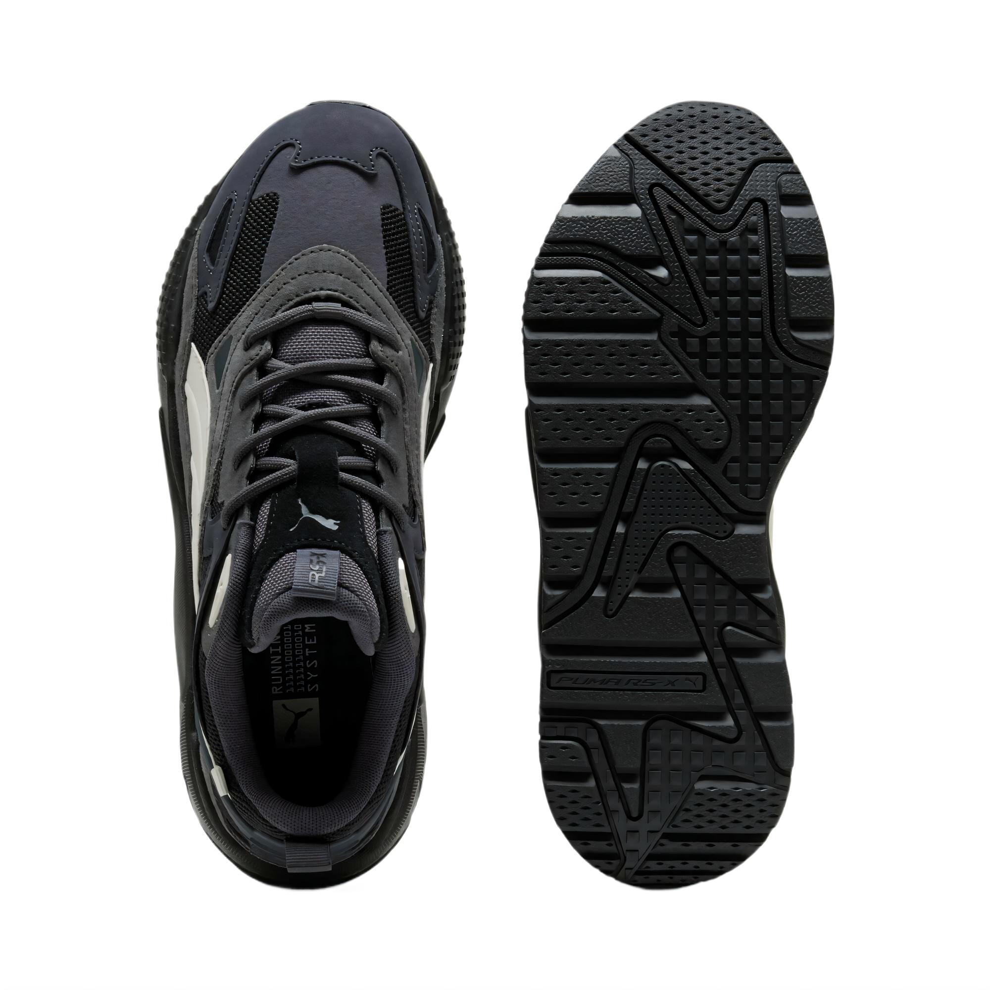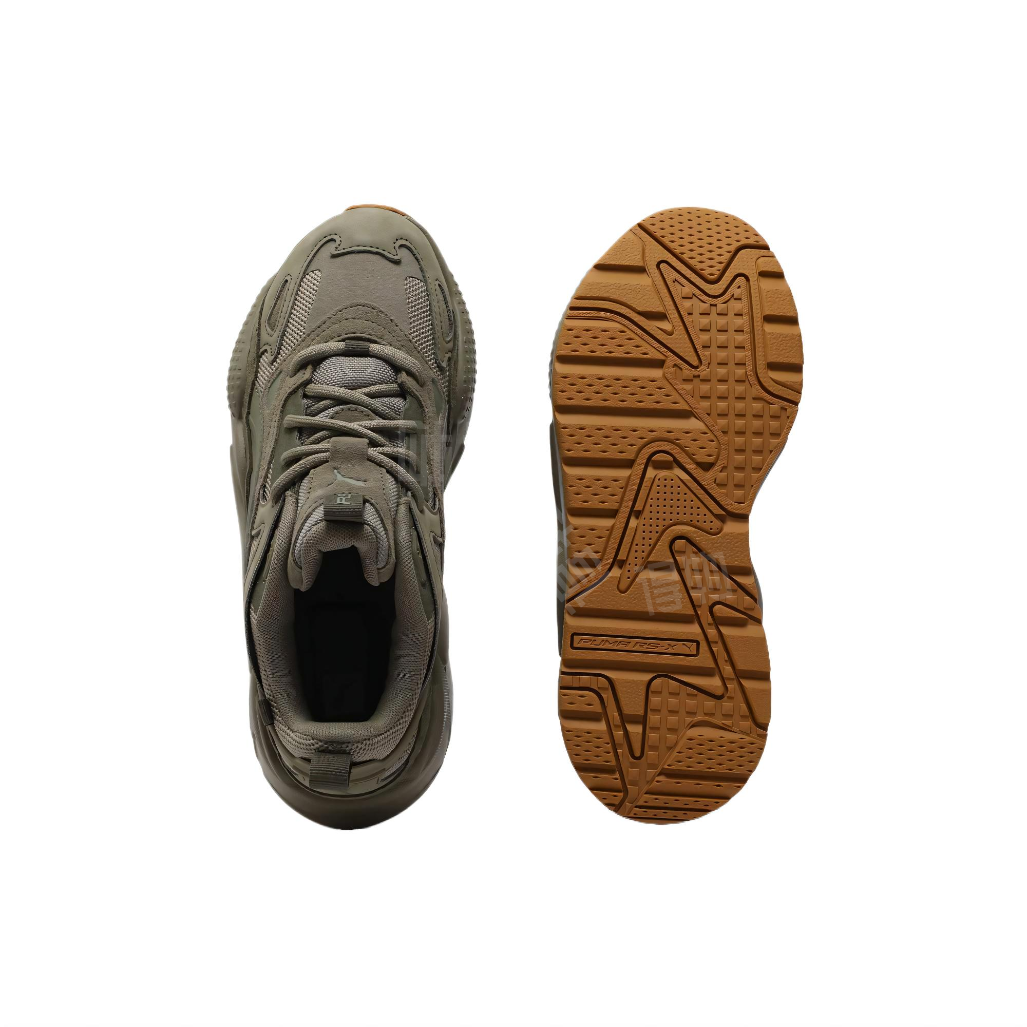 Наружная подошва выполнена из высококачественной резины, обладающей отличным сцеплением и износостойкостью. Её рельефный протектор гарантирует стабильность даже на гладких поверхностях, а благодаря гибким зонам обеспечивается естественное движение стопы. Массивная форма подошвы не только улучшает амортизацию, но и придаёт модели характерную для RS-X силу и выразительность.