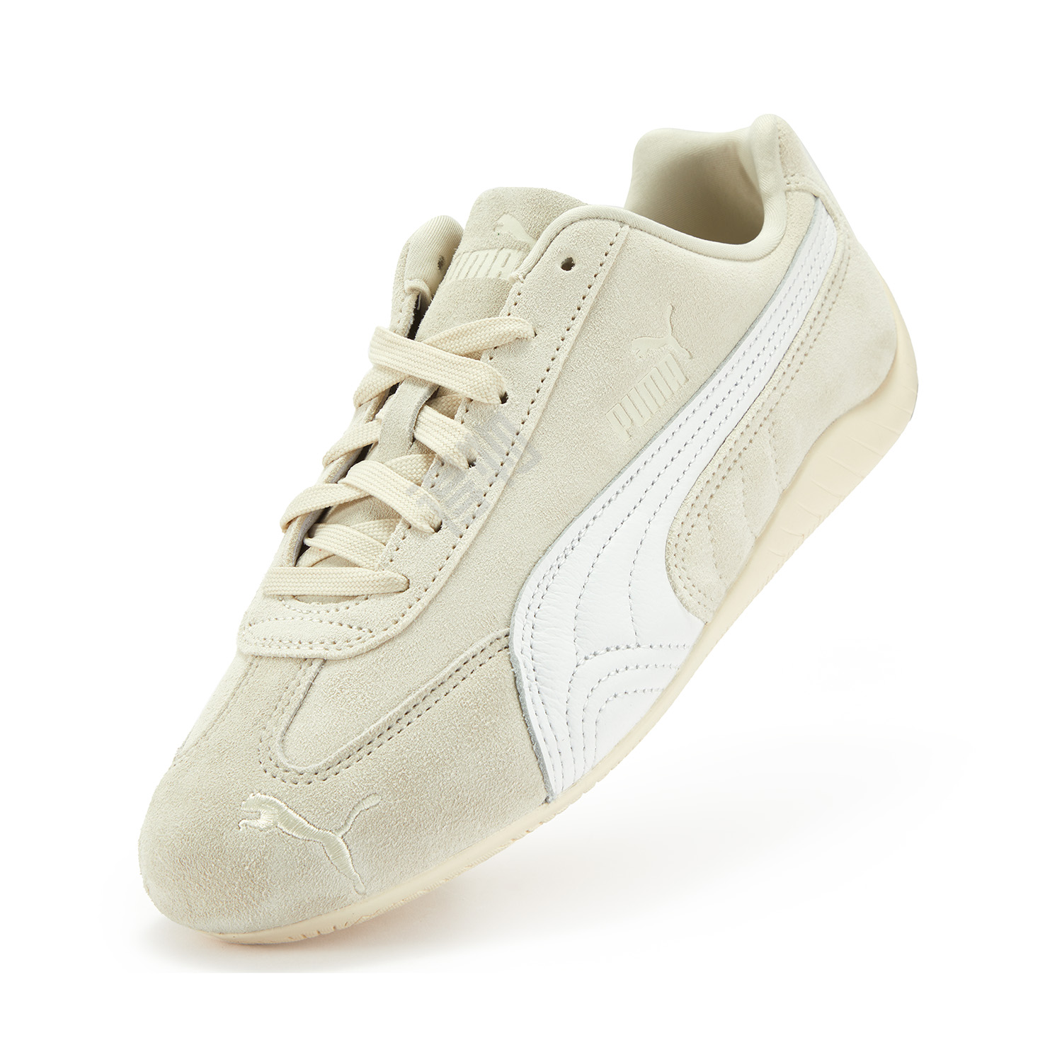 Низкий профиль и обтекаемый силуэт — визитная карточка серии Speedcat. Узкий мыс, изящные линии и плавные формы делают обувь визуально лёгкой и динамичной. Эта модель вдохновлена профессиональной обувью для гонщиков, что ощущается в её эргономике и эстетике: Speedcat будто создан для движения, скорости и уверенности в каждом шаге.