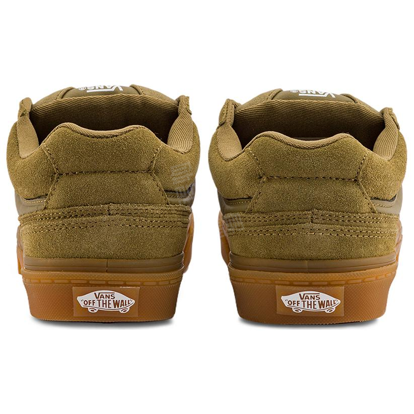 Детали оформления подчёркивают фирменный характер модели. Контрастная белая полоса подошвы добавляет аккуратности и визуальной чистоты, а на задней части размещён легендарный логотип Vans “Off The Wall”, символизирующий подлинность и принадлежность к культовому наследию бренда. Аккуратная прострочка по всему периметру придаёт обуви дополнительную прочность и завершённый внешний вид.