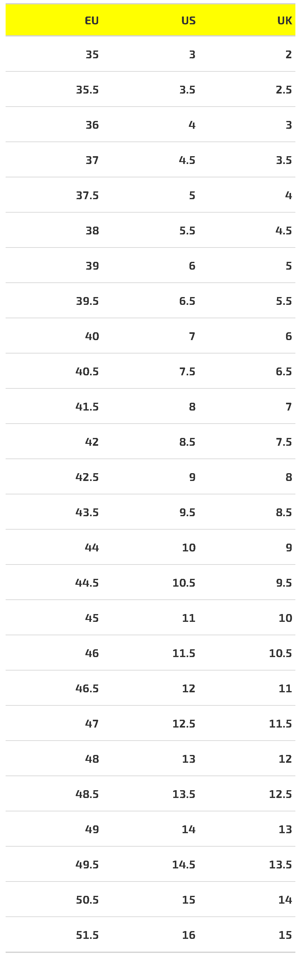 Находим вашу длину стопы в крайнем правом столбце, далее смотрим на крайний левый столбец и видим, какой Ваш размер EU у данной модели для заказа.