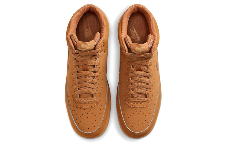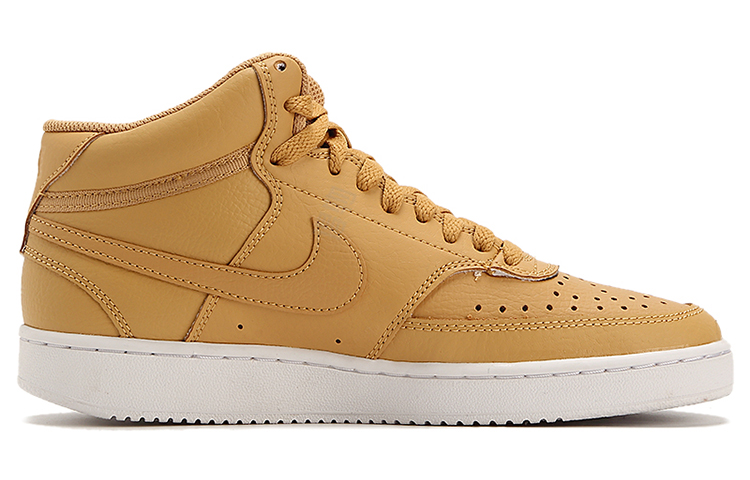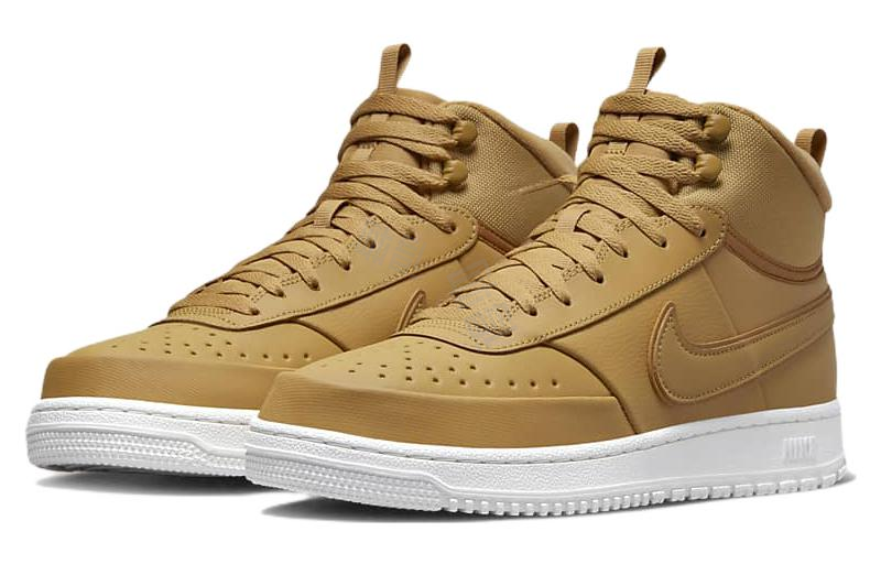 Средняя подошва выполнена из лёгкого и амортизирующего пеноматериала, который эффективно поглощает ударные нагрузки и обеспечивает мягкость при ходьбе. Прочная резиновая подметка с глубоким зимним протектором гарантирует отличное сцепление с различными поверхностями — будь то мокрый асфальт, снег или неровная городская дорожка. Это делает Nike Court Vision Mid Winter 'Elemental Gold' идеальными кроссовками для холодного времени года, сочетая функциональность и стиль.