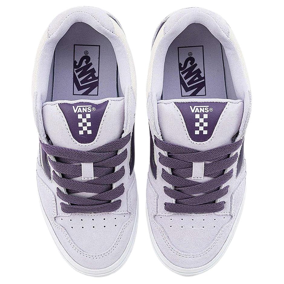 Верх выполнен из высококачественного текстиля (канваса) — лёгкого, прочного и дышащего материала, который обеспечивает оптимальный комфорт и долговечность. Канвас устойчив к износу, отлично держит форму и при этом остаётся мягким и гибким, подстраиваясь под естественное движение стопы. Основной оттенок модели — нежно-фиолетовый (Purple) — придаёт обуви выразительность и лёгкий акцент цвета, сохраняя при этом утончённость и универсальность. Контрастные белые элементы — подошва, шнурки и резиновая окантовка — создают чистый визуальный баланс и подчёркивают классическую эстетику бренда Vans.