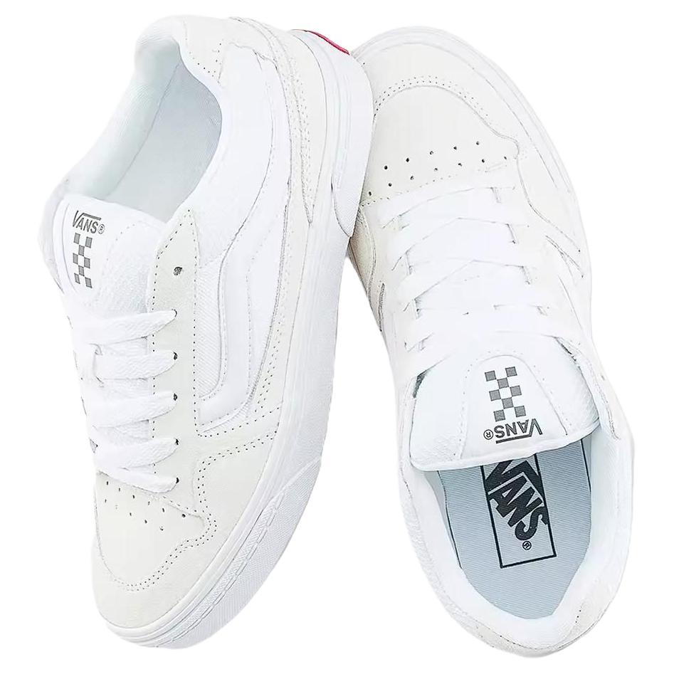 Дизайн модели дополнен фирменными элементами бренда: на задней части подошвы расположен культовый логотип Vans “Off The Wall”, подтверждающий подлинность и аутентичность обуви. Аккуратная прострочка и чистые линии придают кедам опрятный и современный вид, а контрастная белая подошва подчёркивает лёгкость силуэта.