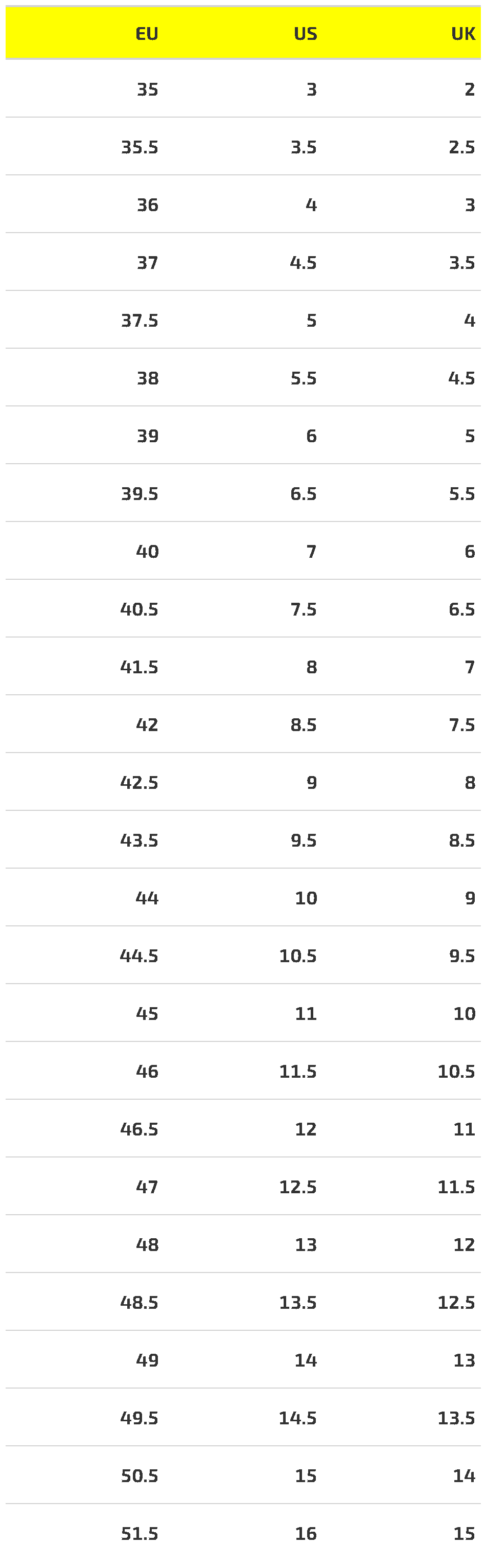 Находим вашу длину стопы в крайнем правом столбце, далее смотрим на крайний левый столбец и видим, какой Ваш размер EU у данной модели для заказа.