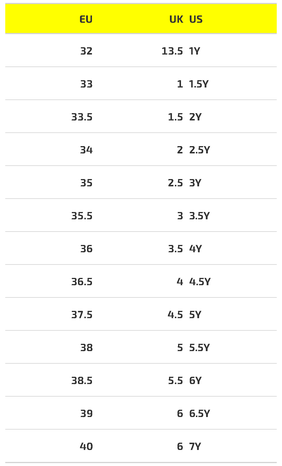 Находим Вашу длину стопы в крайнем правом столбце, далее смотрим на крайний левый столбец и видим, какой Ваш размер EU у данной модели для заказа.