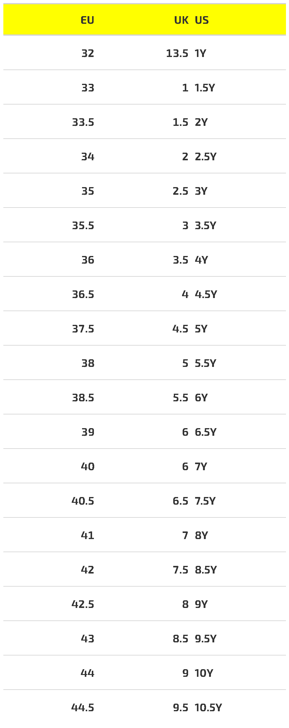 Находим вашу длину стопы в крайнем правом столбце, далее смотрим на крайний левый столбец и видим, какой ваш размер EU у данной модели для заказа.