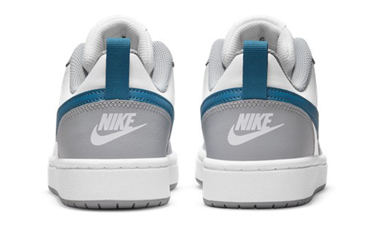 Дизайн Nike Court Borough Low 2 'White Light Smoke Grey Marina' сохранил характер ретро-баскетбольных кроссовок, но получил современные акценты и утончённые линии. Белый цвет придаёт свежесть и универсальность, серые элементы добавляют сдержанности и строгости, а насыщенные синие детали в оттенке Marina делают модель яркой и стильной. Контрастный логотип Nike Swoosh подчёркивает фирменный характер бренда и добавляет модели динамичности.