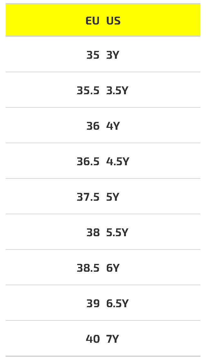Находим вашу длину стопы в крайнем правом столбце, далее смотрим на крайний левый столбец и видим, какой ваш размер EU у данной модели для заказа.