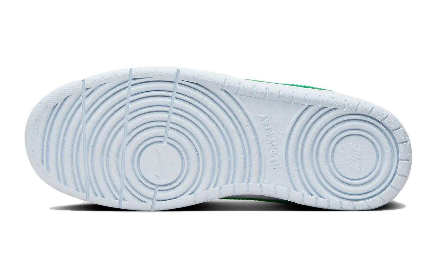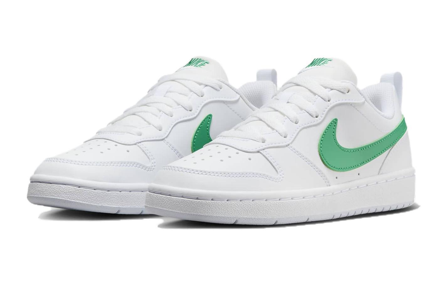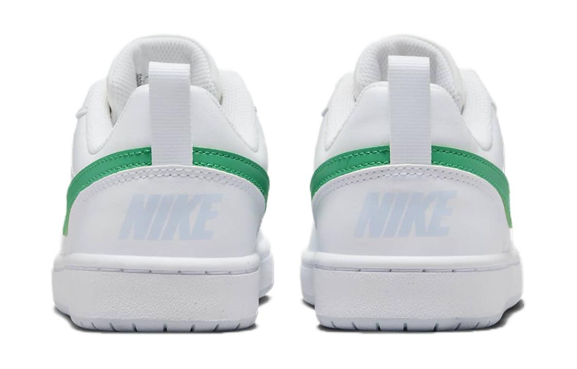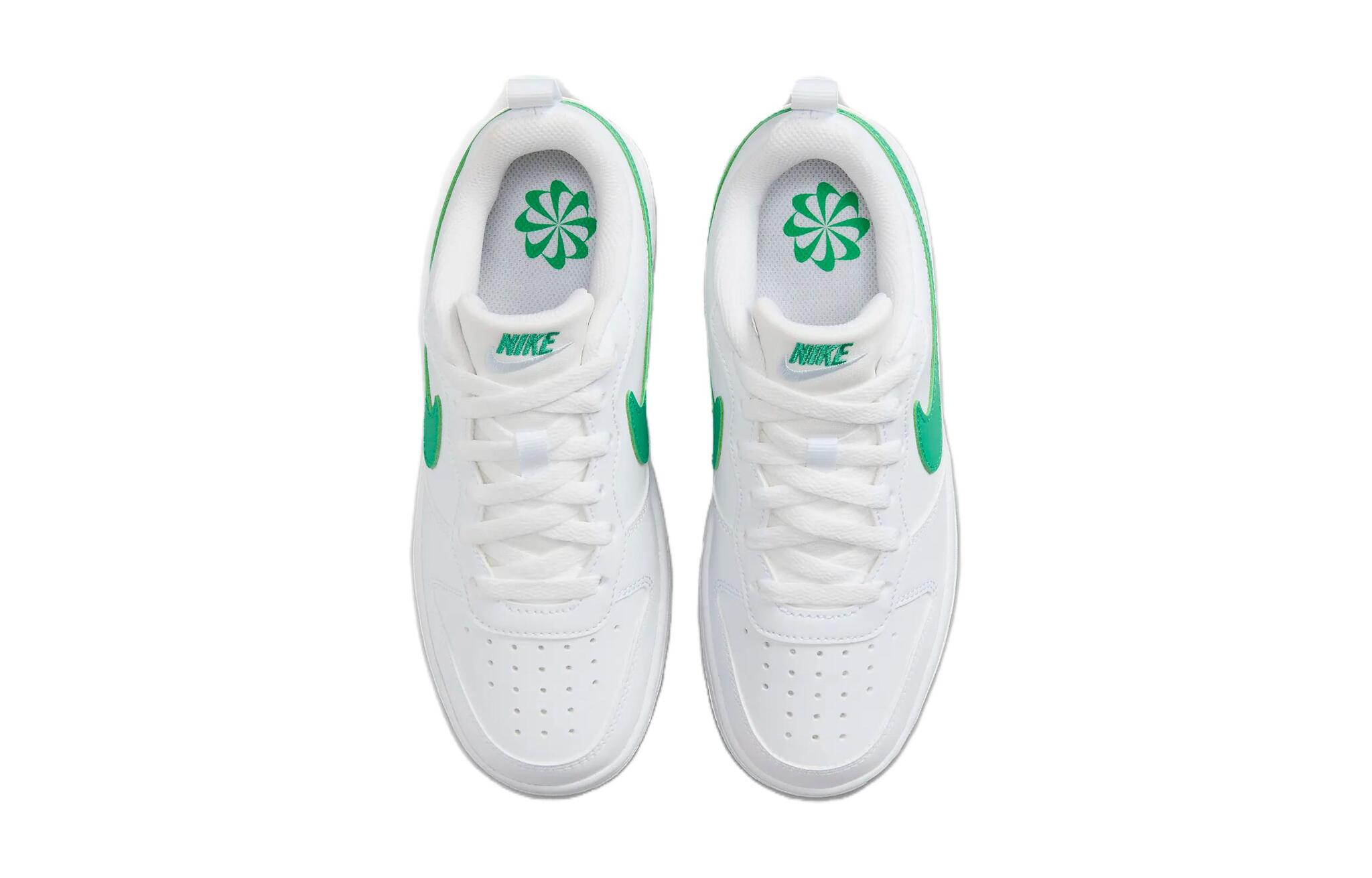 Дизайн Nike Court Borough Low Recraft 'White Green' сочетает в себе чистоту линий и выразительность цветовых акцентов. Белый цвет придаёт модели аккуратность и универсальность, а насыщенные зелёные элементы добавляют яркости и свежести. Контрастный логотип Nike Swoosh, задник и язычок выполнены в зелёных тонах, подчёркивая фирменный стиль бренда и придавая кроссовкам динамичный вид. Белая подошва завершает образ, делая его лёгким и сбалансированным.