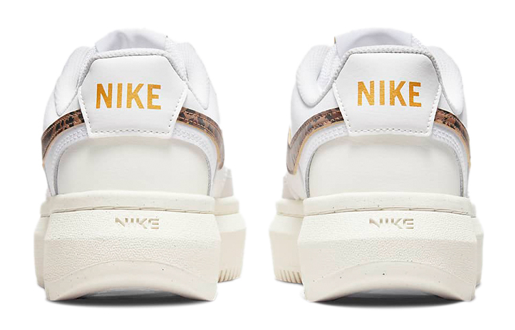 Цветовое решение ‘Leopard’ придаёт кроссовкам выразительность и характер. Основной белый цвет придаёт чистоту и универсальность, а вставки с анималистичным леопардовым принтом добавляют энергии и смелости. Контраст между лаконичной белой базой и динамичным рисунком создаёт эффектный визуальный акцент, превращая обувь в ключевой элемент любого модного образа. Металлические элементы логотипа Nike Swoosh и брендинга на язычке и заднике придают дизайну утончённый, премиальный штрих.