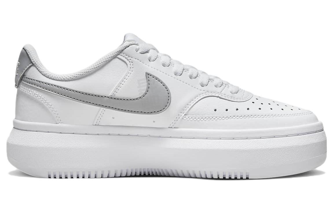 Верх кроссовок выполнен из высококачественной натуральной и синтетической кожи, которая обеспечивает прочность, устойчивость к износу и сохраняет аккуратный внешний вид даже при частой носке. Основной белый цвет подчёркивает чистоту и аккуратность силуэта, придавая модели свежесть и универсальность. Минималистичный дизайн, аккуратные строчки и фирменный логотип Nike Swoosh, выполненный в тон верха, создают утончённый и лаконичный образ.